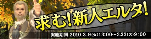株式会社ハンビットユビキタスエンターテインメント(本社:東京都千代田区、代表取締役:キム?ユラ、以下 HUE)は、3月9日(火)13:00より、MMORPG『AIKA ONLINE(エイカ オンライン)』にて、新規ユーザー様へのサポートイベント 『求む! 新人エルタ!』 を開催することをお知らせいたします。
